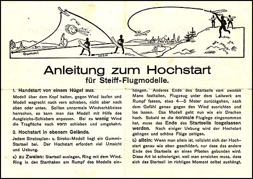 Fertigmodell 8110S von 1936 mit Startseil und Anleitung zum Hochstart.